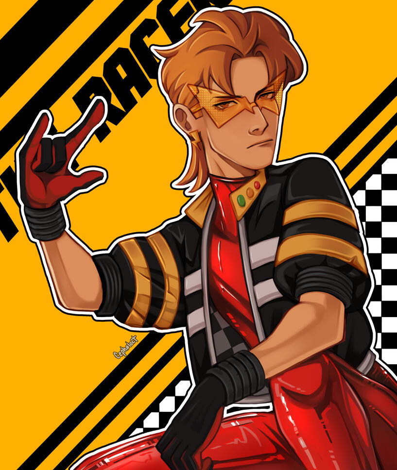 | Tierney is a former racecar driver whose legs became crippled after a racing accident, bringing their glory days to an abrupt end. However, after being approached by the Heroics Corporation, they were given a second chance. Being gifted a new prosthetic leg and having the other healed by the power of the Golden Glory, Tierney gained their Golden Heart and now works as The Racer, back in the spotlight where they believe they rightfully belong. |